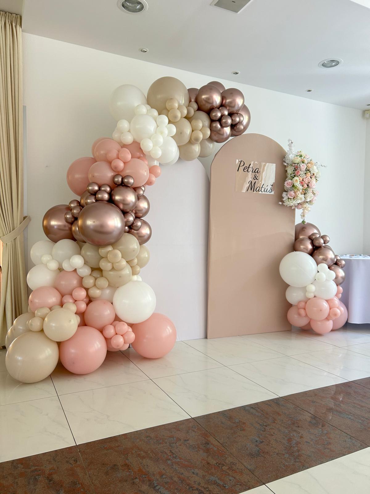 Tvar a rozloženie balónov nie je nutné dodržiavať presne podľa fotografie. Fotografia slúži len ako inšpirácia, samozrejme ale je možné postaviť presne rovnaký tvar 1:1, nakoľko naše fotografie sú fotené v reále z rovnakého počtu balónov ako je uvedené pri tejto sade. K zaveseniu girlandy Vám pomôžu aj pribalené nalepovacie háčiky.