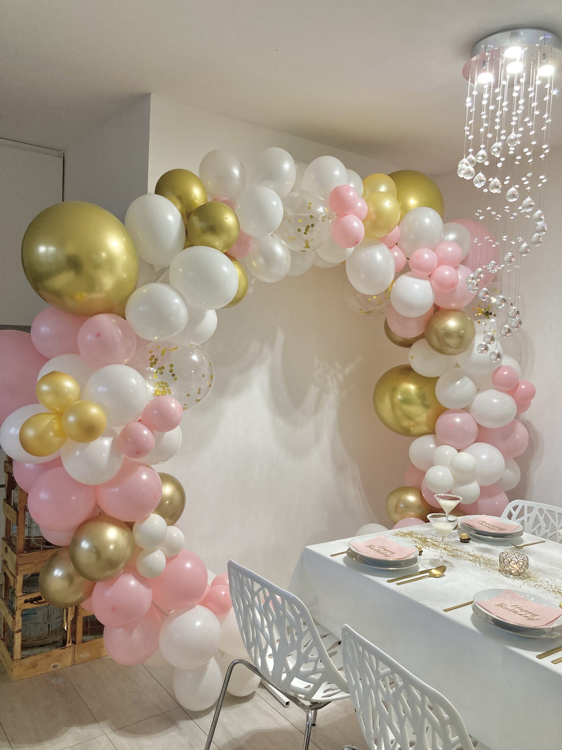 Tvar a rozloženie balónov nie je nutné dodržiavať presne podľa fotografie. Fotografia slúži len ako inšpirácia, samozrejme ale je možné postaviť presne rovnaký tvar 1:1, nakoľko naše fotografie sú fotené v reále z rovnakého počtu balónov ako je uvedené pri tejto sade. K zaveseniu girlandy Vám pomôžu aj pribalené nalepovacie háčiky.